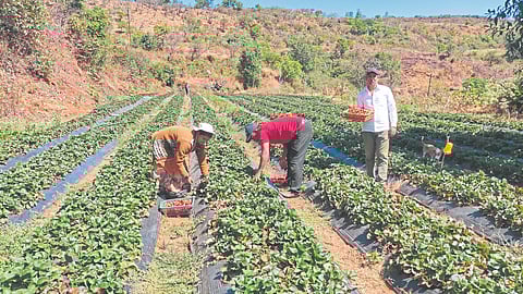 रामदास यांनीही खडकाळ माळरानावर पाच गुंठ्यांत सहा हजार स्ट्रॉबेरी रोपांची लागवड केली. तीन वर्षांनी वीज आली. अनुभव व या शेतीचा आवाका वाढत जाईल तशी क्षेत्रात वाढ केली.